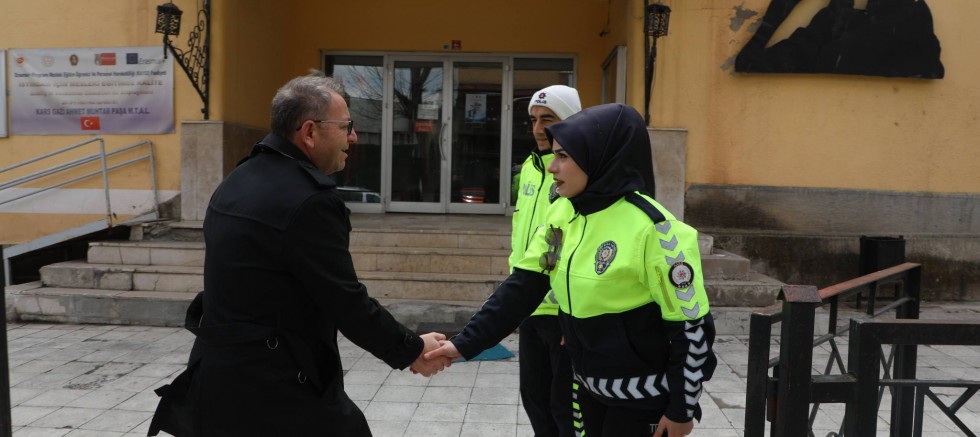 Kars Valisi Ziya Polat, vatandaşların ve öğrencilerin huzur ve güvenliği için okulların girişlerinde ve çevresinde görev yapan emniyet personelini ziyaret ederek çalışmalarında kolaylıklar ve başarılar diledi.