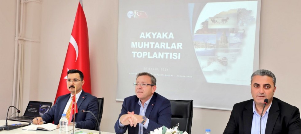 Kars Valisi Ziya Polat, Akyaka Kaymakamı İsmail Demirtaş, Belediye Başkanı Ergüder Toptaş ile birlikte mahalle ve köy muhtarları ile bir araya geldi.