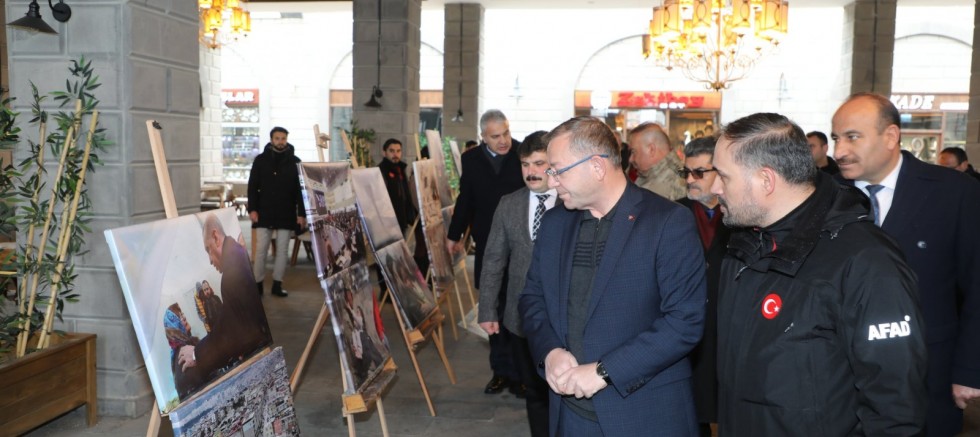 Bedesten Bölgesi'nde açılışı yapılan sergi daha sonra protokol üyeleri tarafından gezildi. Anlamlı fotoğraf sergisinde duygulu anlar yaşanırken, Vali Ziya Polat, Devletin depremin yaralarını kısa sürede sardığını söyledi.