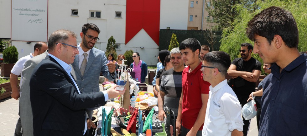 Sergiyi gezerek ürünler hakkında bilgi alan Vali Ziya Polat, öğrenciler ve eğitmenlerini başarılı çalışmalarından dolayı tebrik etti.