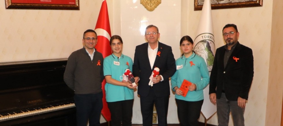 Kars Valisi Ziya Polat'ı Yenişehir Ortaokulu yönetici, öğretmen ve Lösemili Çocuklar Sosyal Kulübü öğrencileri ziyaret ettiler.