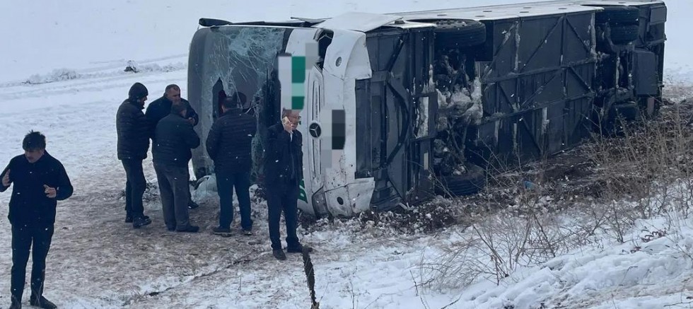 Iğdır'dan gelen yolcu otobüsü Kars'ın Selim ilçesi yakınlarında devrildi, 23 yolcunun yaralandı.