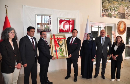 Açılışın ardından Çalkın ve davetliler sergiyi gezerek öğrencilerden el emeği ürünler hakkında bilgi aldı.